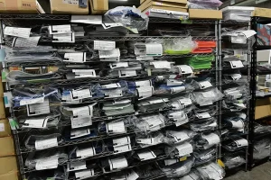 工場内に保管しているサンプル。さまざまな色・手触りが揃っている。