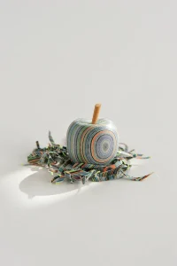 このプロジェクトがユニークなのは、あえてニューノスのデッドストック(過去に試作としてつくり、現在は使い道がないもの)を用いた点だ。廃棄物を原材料とするのがアップサイクルだが、最近ではそのアップサイクル製品を使い終わったときにどうするのかまで考えることも、重視され始めている。また、アップサイクルの工程で大量の廃棄物を出したり、在庫が大量に余ったりする状況になってしまっては、やはり環境負荷は減らない。アップサイクルやリサイクルが一般的になったことで、一歩先へと踏み込んだ意識・対策が求められるようになったのだ。デッドストックの活用は、その対策の一つになる。ニューノスは製造時に出る大きな端材を集めて再びニューノスの材料にするほか、コケシやバランスタワーといった小さい塊を利用した製品をつくることで、製造工程での廃棄を抑えている。それでも出てしまう小さな欠片やおが屑は、産業用固形燃料として活用し、できる限り廃棄物が出ないよう工夫している。