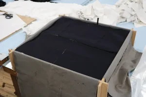 1枚1枚、布を積み重ねる。この時のわずかなズレ・歪みが唯一無二の模様を生み出す。