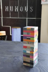 端材を組み合わせたバランスタワー。カラフルなインテリアになるとともに、廃棄物削減にも貢献できる。
