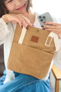 Out of the Woods®は、そうした森林の循環を支える間伐材の有効活用に貢献するバッグブランドです。採用している「ウォッシャブルペーパー」は、独自製法でつくられたエコ素材。ウォッシャブルペーパーの原料には、間伐材から得られる木の繊維が使用されています。